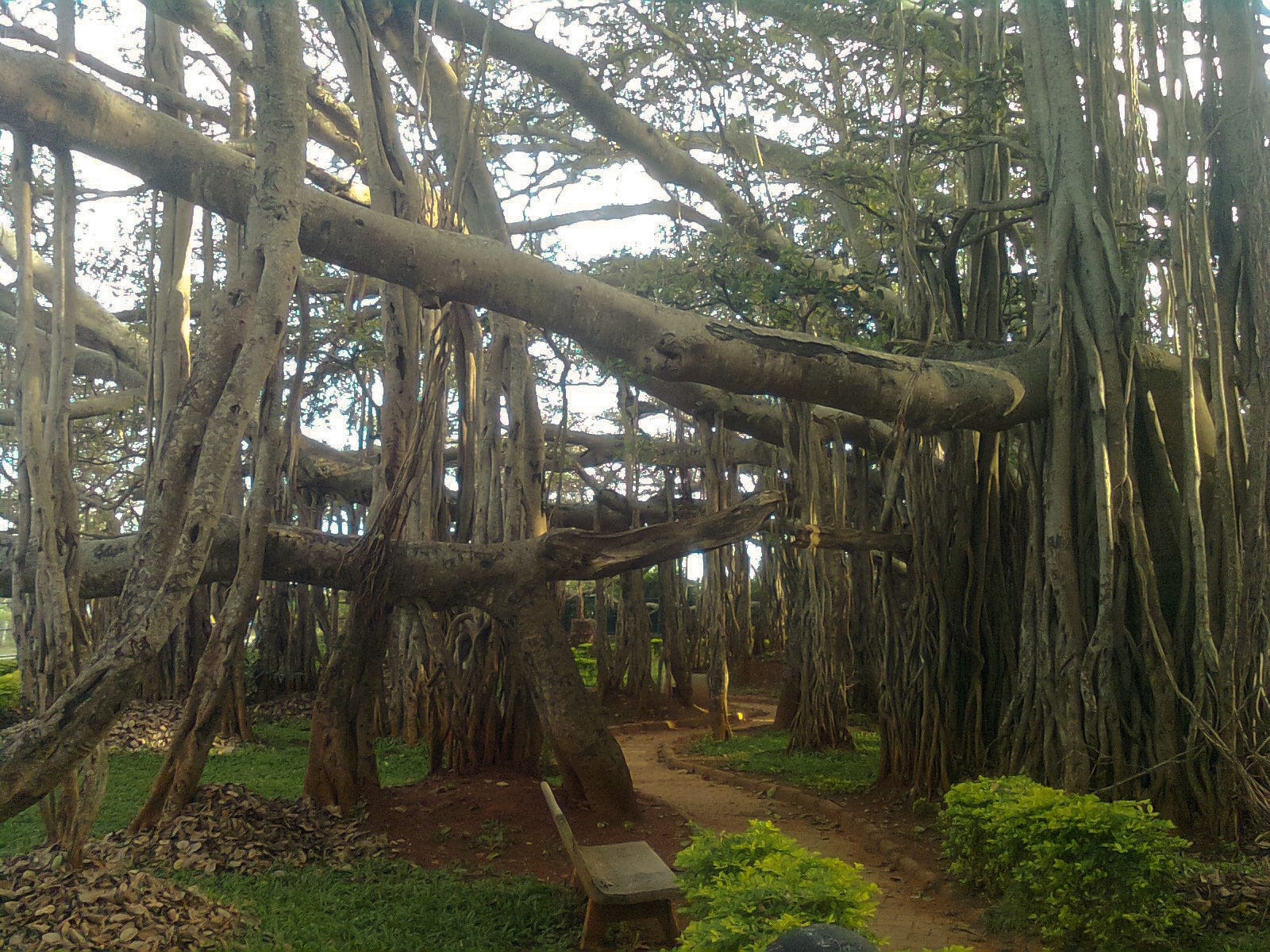I was surprised to learn that one such tree, with a circumference of 2,000 feet has been estimated as being capable of sheltering 20,000 people. That is a massive amount of shade. India has several giant banyans. Thimmamma Marrimanu in Andhra Pradesh currently holds the Guinness canopy record at about 5.41 acres (an area equivalent to three soccer fields); The Great Banyan in Kolkata is another famous specimen at about 4 acres. A tree covering this much area went completely against what I would expect from a tree.